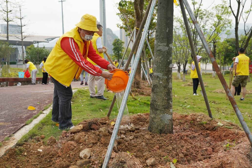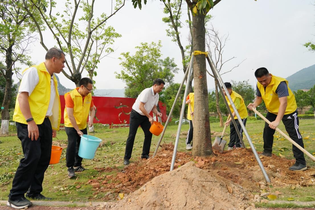 为持续助力“百千万工程”和绿美云浮生态建设,4月15日,云浮市体彩中心联合云浮市体育中心(中心体校)在云浮市体育公园开展“体彩公益林”植树活动。云浮市文化广电旅游体育局有关领导和市体彩中心、市体育中心干部职工共40多人参加活动。