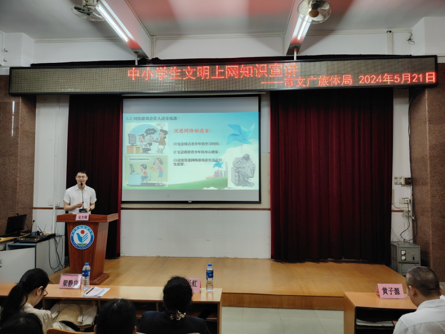 活动中,云浮市文广旅体局工作人员以宣讲的方式,通过通俗易懂的语言及生动鲜活的案例,让同学们了解“如何提高自身网络素养,做一名及格的网友”。活动现场设有奖问答环节,工作人员围绕《互联网上网服务营业场所管理条例》《中华人民共和国未成年人保护法》等法律法规知识以及课件相关内容,采取互动问答的形式,促使学生们加深对相关知识的理解与掌握,现场气氛热烈。