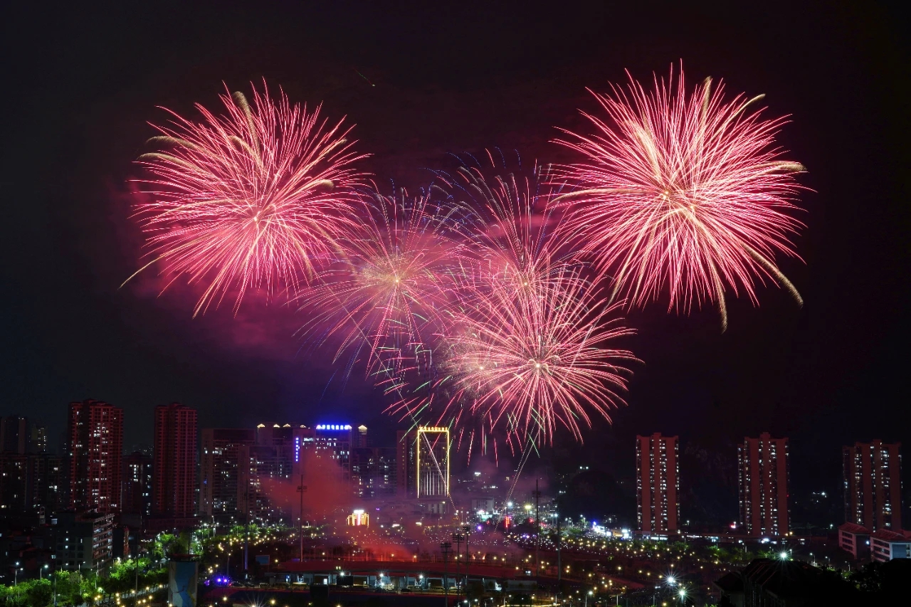 9月28日晚上,云城、罗定、新兴、郁南四地同时进行烟花汇演活动,通过焰火漫舞的绚烂图景,呈现云浮市和各县(市、区)30年来取得的丰硕成果。云城:云浮市体育公园;罗定:罗定市江滨公园;新兴:金台山智慧公园;郁南:西江水文化主题公园。
