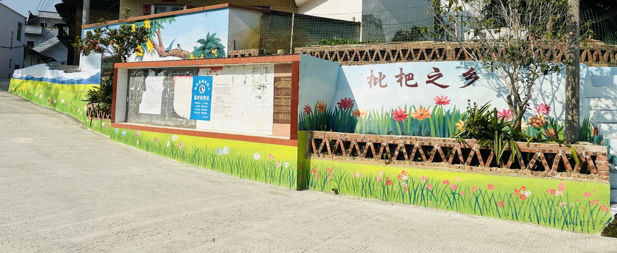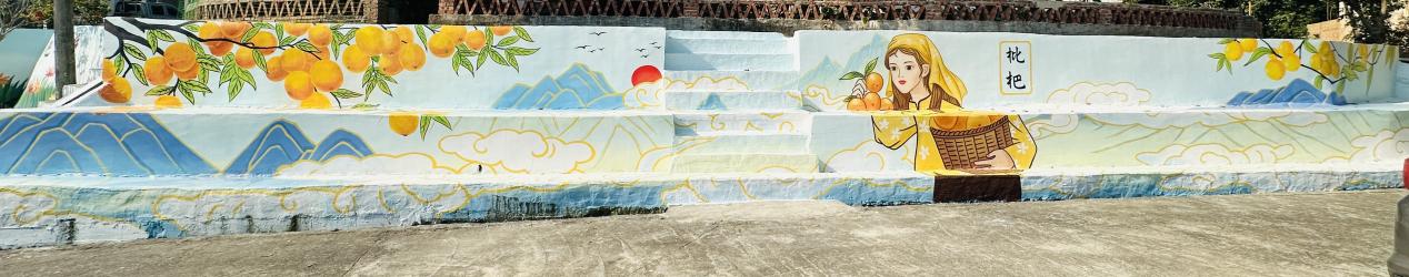 经过前期调研和反复研讨,挂点单位明确白瓦村以“乡村特色农产品”为创作主题,通过绘就当地特色“梅花”及“枇杷”的景色,全方位展现白瓦村独特的乡村风貌,用墙绘这一独特艺术表现形式,助力美化村容村貌,传播先进文化理念,涵养文明乡风。