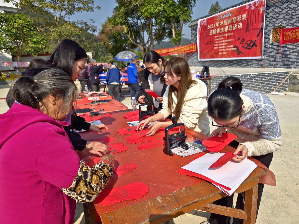与此同时,传统印年画、印红包、有奖竞猜谜语等活动相继开展,活动现场人头攒动、热闹非凡,村民们有的手持春联和福字,有的拿着年画、红包,有的猜谜语获得的奖品穿梭在人群中,将这一份份特别的祝福送到每一位村民手中。此外还了解了参观了市体育彩票管理中心公益支持的乡村图书屋的建设和文化下乡助力“百千万工程”有关情况。