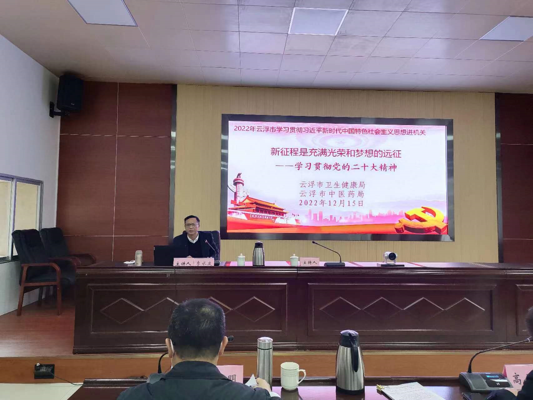 2022年12月15日,市直卫生健康系统召开学习贯彻党的二十大精神专题宣讲会,邀请市委宣讲团成员,市文联主席李水友同志授课。市卫生健康局、市中医药局全体党员干部,市卫生健康局直属各单位宣传工作分管领导及相关科室负责人员参加了会议。