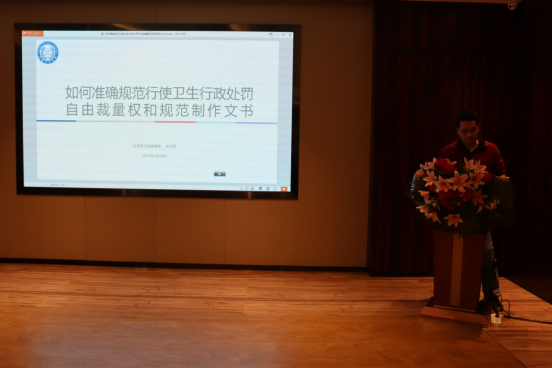 会上,云浮市卫生健康局政法监督科朱必勇科长以《如何准确规范行使卫生行政处罚自由裁量权和规范制作文书》为题,结合云浮市日常行政处罚卷宗审查发现的问题,就如何准确规范行使卫生行政处罚自由裁量权,如何规范制作文书等方面给全体与会人员作了一场精彩的培训和经验分享。