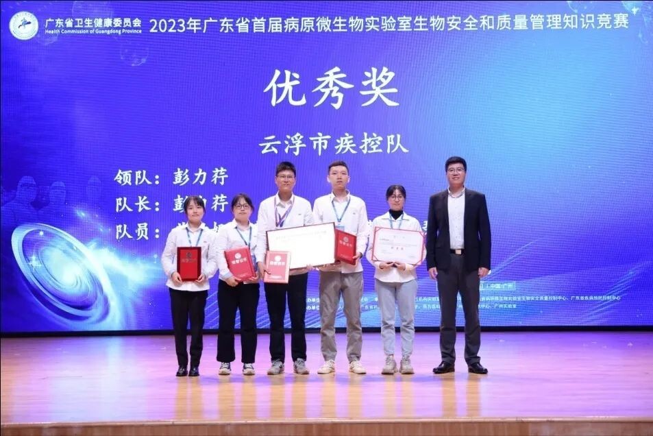 经过市级笔试和竞答初赛后选拔出由程福安、彭世桃、刘芝曼、苏剑艺、邵杰枝组成的云浮医疗队,由彭力荇、袁娟娟、李碧明、陈卓赞、黄幼娜组成的云浮疾控队参加本次竞赛决赛。在预赛阶段经过笔试和竞答激烈角逐,云浮市疾控队以第六名的预赛成绩突围挺进总决赛,在总决赛上不畏劲敌,沉着应对,配合默契,最终以第七名的成绩喜获优秀奖。
