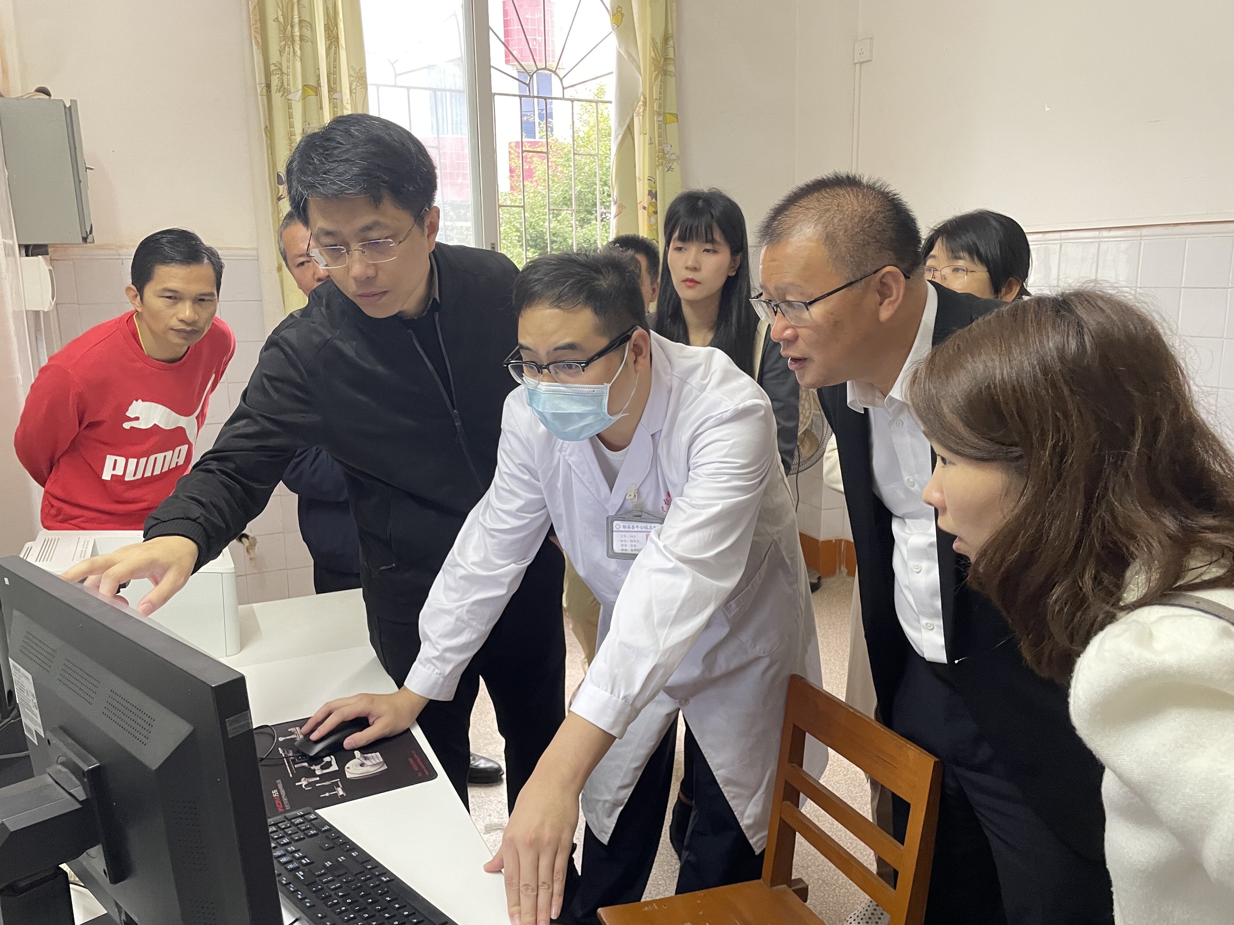 图2-省专家组一行到郁南县医共体总院实地调研医共体心电中心建设工作情况
