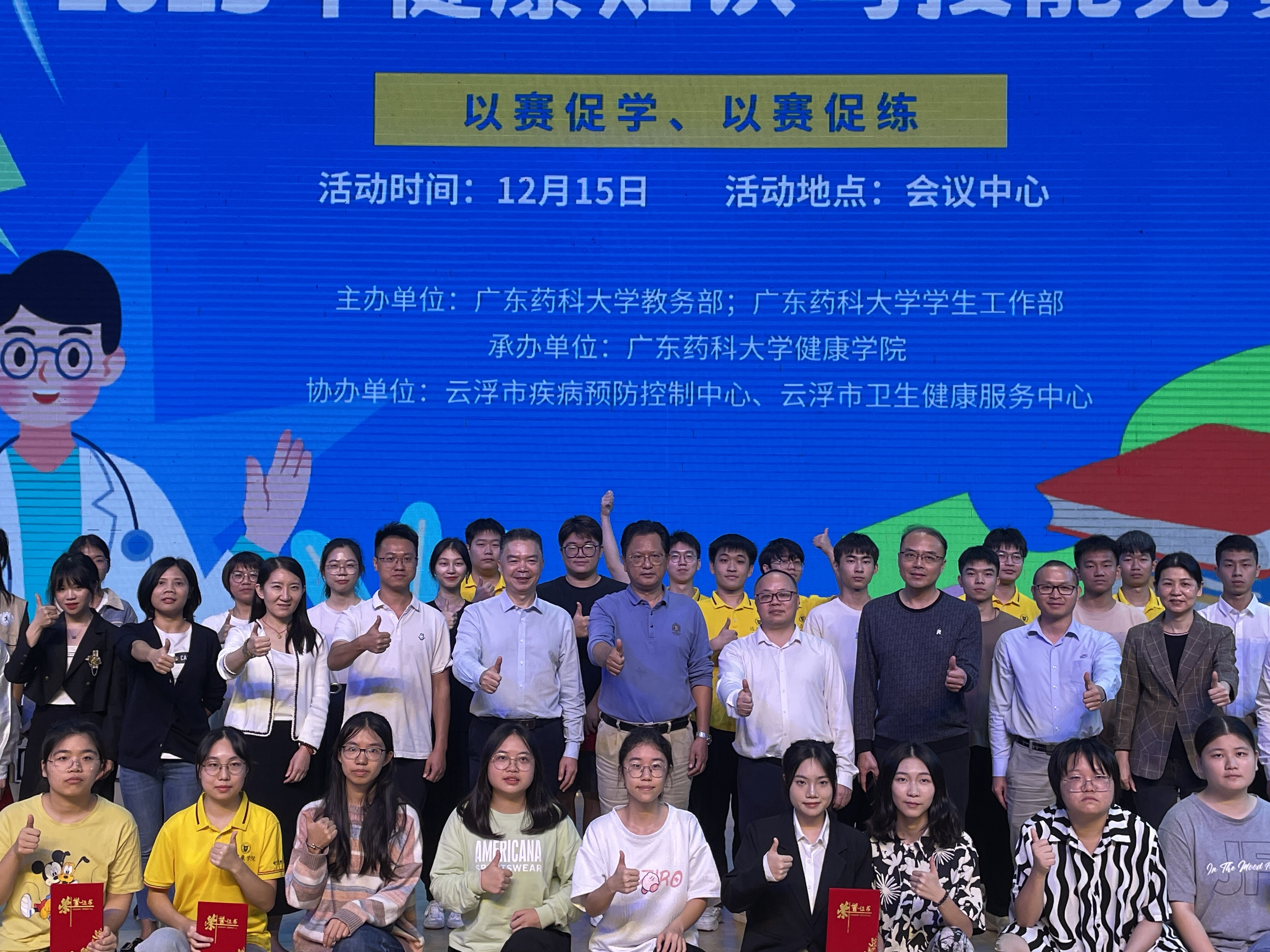 为深化百校联百县助力“百县千镇万村高质量发展工程”,云浮市卫生健康局深化与高校联动协作,2023年12月15日下午,广东药科大学2023年健康知识与技能竞赛在广东药科大学云浮校区举办,竞赛分为健康运动、健康宣讲、健康问答、健康新媒体四个赛道,并进行了“广东药科大学云浮校区健康教育志愿服务支队”成立及授旗仪式。本次竞赛由广东药科大学主办,市疾病预防控制中心、市卫生健康服务中心协办。
