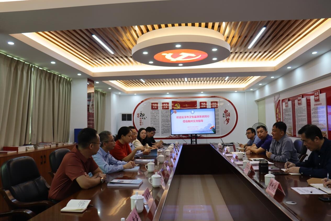 为提升我市公共场所卫生监督工作水平,进一步做好国家卫生城市复审工作,2024年3月27日,市卫生监督所所长欧阳明带队所班子和科室负责人以及云安区、新兴县卫生监督所所长共9人组成学习交流组赴肇庆市卫生监督所学习交流公共场所卫生常态化监管工作先进经验。肇庆市卫生监督所所长肖骐龙,副所长李肇生、陈树庭以及相关科室负责人参加了交流活动。