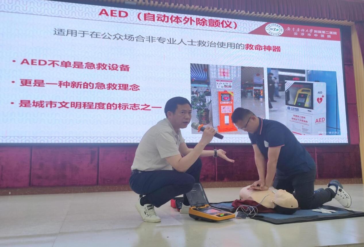 图4 — 市中医院的专家演示AED除颤仪操作流程