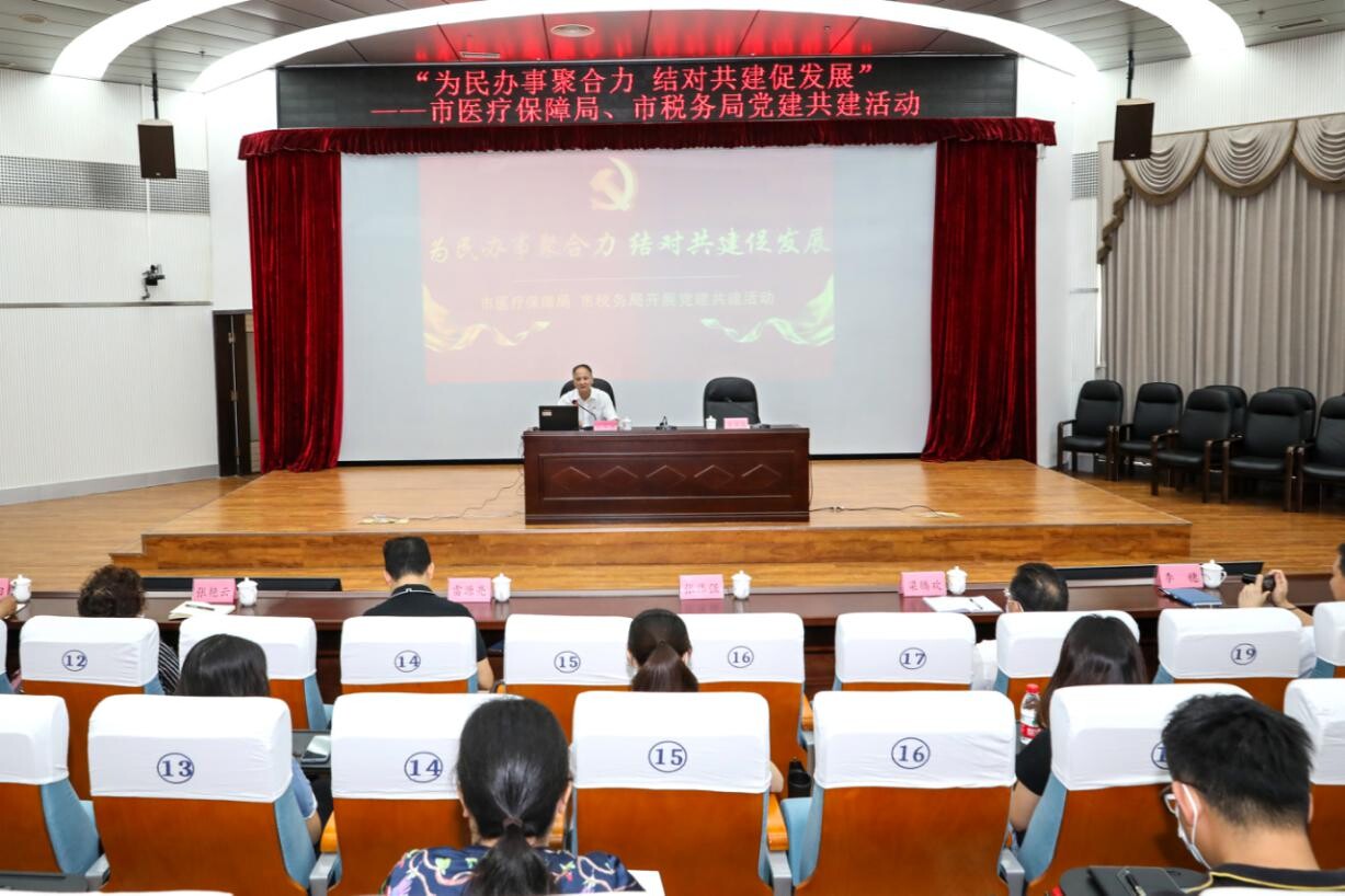 为深入开展党史学习教育,深化对党奋斗历程的认识,践行为人民服务的宗旨,以优异成绩迎接建党100周年,5月18日上午,市医保局、市税务局联合开展党史党课暨“为民办事聚合力,结对共建促发展”党建共建活动。市医保局全体党员干部,市税务局、中国银行云浮分行、中华联合财产保险股份有限公司云浮中心支公司部分党员干部参加本次活动。