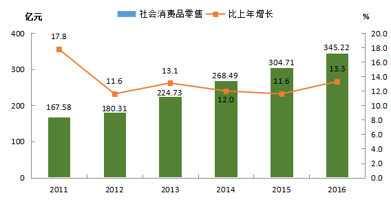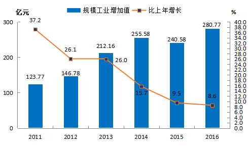 初步核算,2016年全市实现地区生产总值(GDP)778.28亿元,比上年增长7.9%。其中,第一产业增加值163.23亿元,增长3.8%,对GDP增长的贡献率为10.1%;第二产业增加值325.62亿元,增长8.5%,对GDP增长的贡献率为46.1%;第三产业增加值289.43亿元,增长9.4%,对GDP增长的贡献率为43.8%。三次产业结构为21.0:41.8:37.2。在第三产业中,批发和零售业增长5.5%,住宿和餐饮业增长3.1%,金融业增长10.2%,房地产业增长8.1%。民营经济增加值555.86亿元,增长8.3%。2016年全市人均地区生产总值达到31501元,增长7.1%,按平均汇率折算为4742.5美元。