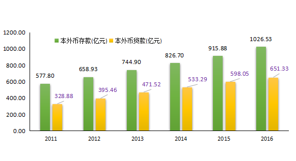 年末全市金融机构本外币各项存款余额1026.53亿元,比上年末增加110.64亿元,增长12.1%。其中,境内存款余额1017.89亿元,增加110.51亿元,增长12.2%;住户存款余额680.04亿元,增加70.74亿元,增长11.6%。全市金融机构本外币各项贷款余额651.33亿元,比上年末增加 53.27亿元,增长8.9%。其中,短期贷款余额162.85亿元,减少3.52亿元,下降2.1%;中长期贷款余额488.12亿元,增加56.84亿元,增长13.2%。