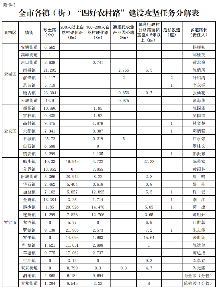3.全市各镇(街)“四好农村路”建设攻坚任务分解表