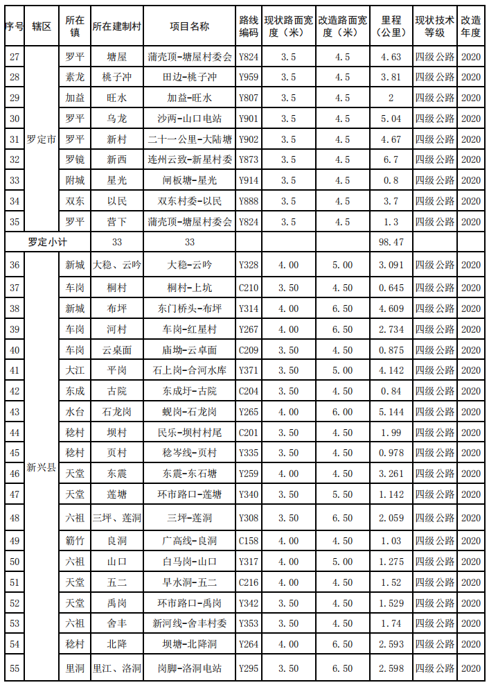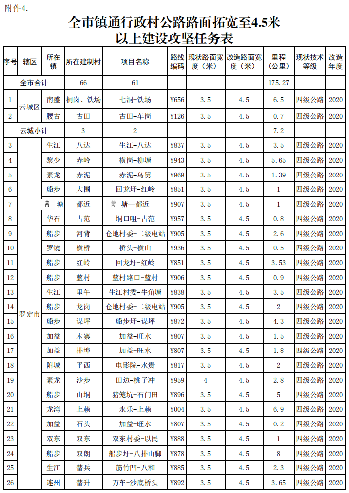 4.全市镇通行政村公路路面拓宽至4.5米以上建设攻坚任务表