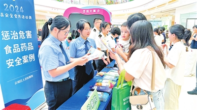 随后,现场开展食品安全宣传咨询活动,各部门通过宣传展板、发放资料、现场咨询等方式与群众互动,大力宣传食品安全法规,普及食品及保健食品知识,指导科学食用,接受投诉举报。其间,还开展“你点我检 服务惠民生”活动,进一步提升公众食品安全素养,营造社会共治共享氛围。
