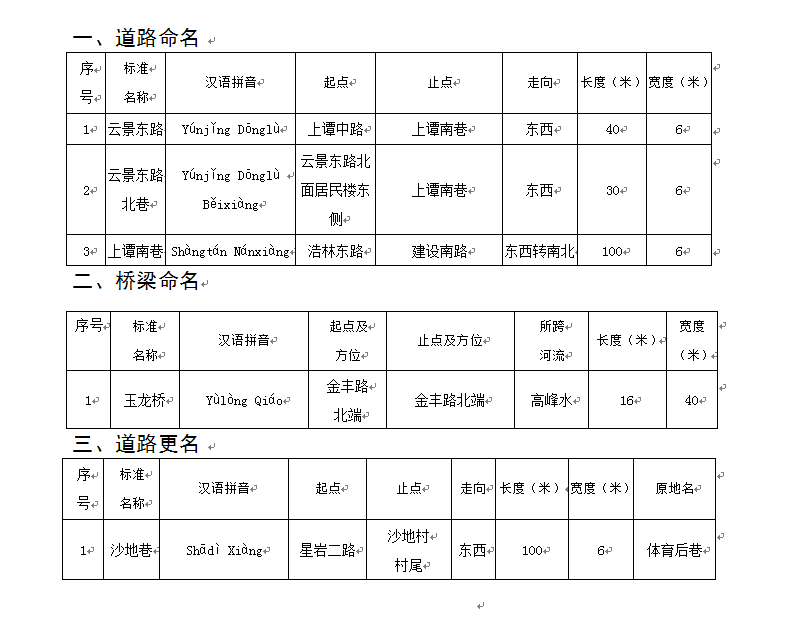 根据《云浮市地名管理办法》(云府〔2003〕125号)有关规定,经世界杯投注官网第六届五十八次常务会议批准,现对市城区云景东路、云景东路北巷、上谭南巷等三条道路、玉龙桥桥梁的命名,以及体育后巷更名为沙地巷予以公告。