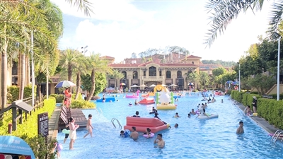 活动期间,新兴县各大旅游景区迎来一波游客高峰。其中,位于水台镇的悦天下生态度假区,成为不少市民游客的夏日旅游首选。记者看到,现场人气十分火爆,大批“组团遛娃”的亲子游家庭在回旋数千米的泳道上嬉戏玩水、欢乐畅游,玩得不亦乐乎。该度假区市场总监王丁亚说:“我们景区已经迎来暑期旅游旺季,近期客房已订满。”