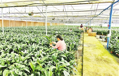 在推进党建引领绿美生态建设中,东坝镇深入挖掘花卉产业的潜力,依托“花经济”在双凤村打造华创花卉基地,将花卉产业与乡村绿化美化紧密结合,助力“百千万工程”提速增效。华创花卉基地采用“公司+基地+农户”模式,探索“收种-育苗-种植-回购-销售”全产业链,实现从种子收购到成品销售的生态闭环,辐射带动周边村民参与花卉种植。据了解,该基地实现土地流转260亩,目前建成4万平方米高标准花卉大棚,种植铁海棠、网纹草、粗肋草等60多个品种小盆栽,可带动村民增收约100万元。