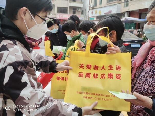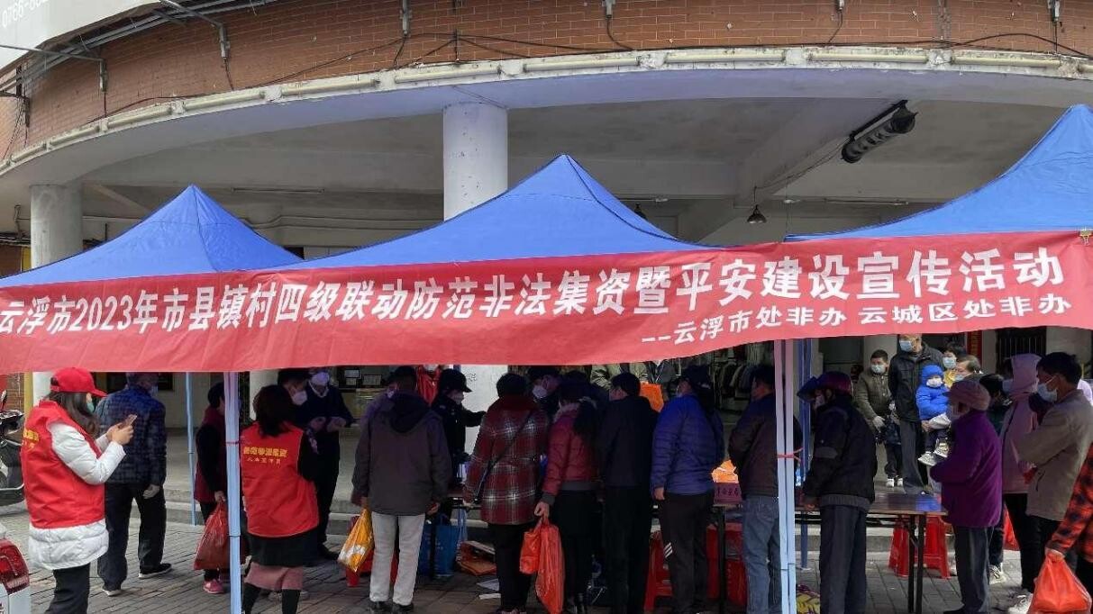 本轮市县镇村四级联动的防范非法集资宣传教育活动贯穿春节前后,市处非办将持续加强对防范非法集资、常态化扫黑除恶平安建设宣传引导的工作,多举措推进防范非法集资宣传教育工作,创建2023年春节防范非法集资微信公众号专题内容,摄制2023年防范非法集资暨春节贺年视频,发布《致云浮市民春节期间防范非法集资的一封信》等内容,同步开展形式丰富多样、群众喜闻乐见的现场宣传活动。