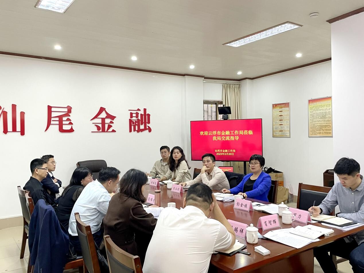 在汕尾市金融工作局,考察组一行听取了汕尾市金融工作局副局长郑少琴以及金融监管科、粤财普惠金融(汕尾)融资担保公司的经验介绍,在座谈交流中,对地方金融组织发展和监管情况、防范和处置非法集资工作经验做法进行交流学习,深入了解了汕尾市建立非法金融活动信息举报平台、金融知识普及和投资教育示范基地、融资担保业务发展的具体做法,对办理非法集资案件存在的难点问题进行了深入探讨。
