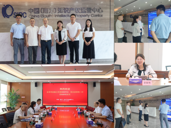 在中国(南方)知识产权运营中心(简称“南方中心”)考察调研时,与南方中心董事长黄卫军进行座谈交流,黄董详细介绍了南方中心的发展历程、平台优势和核心业务,分享了知识产权证券化“深圳模式”的成功经验。双方围绕知识产权招商引资、开展知识产权金融创新、挖掘知识产权资产价值等展开座谈,并就开展知识产权证券化“云浮模式”达成了初步合作意向。梁首艳表示希望加强与南方中心交流合作,开拓云浮市知识产权证券化市场,为我市企业拓宽融资渠道,降低融资成本,通过金融创新赋能云浮高质量发展。