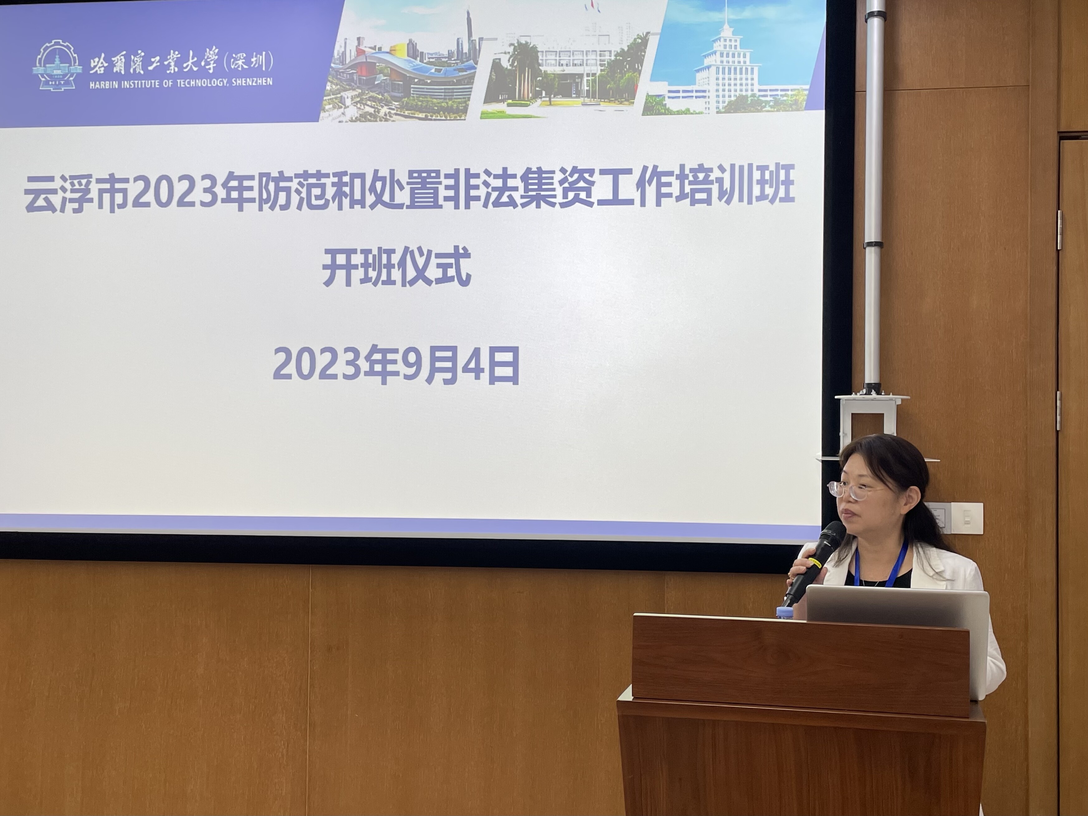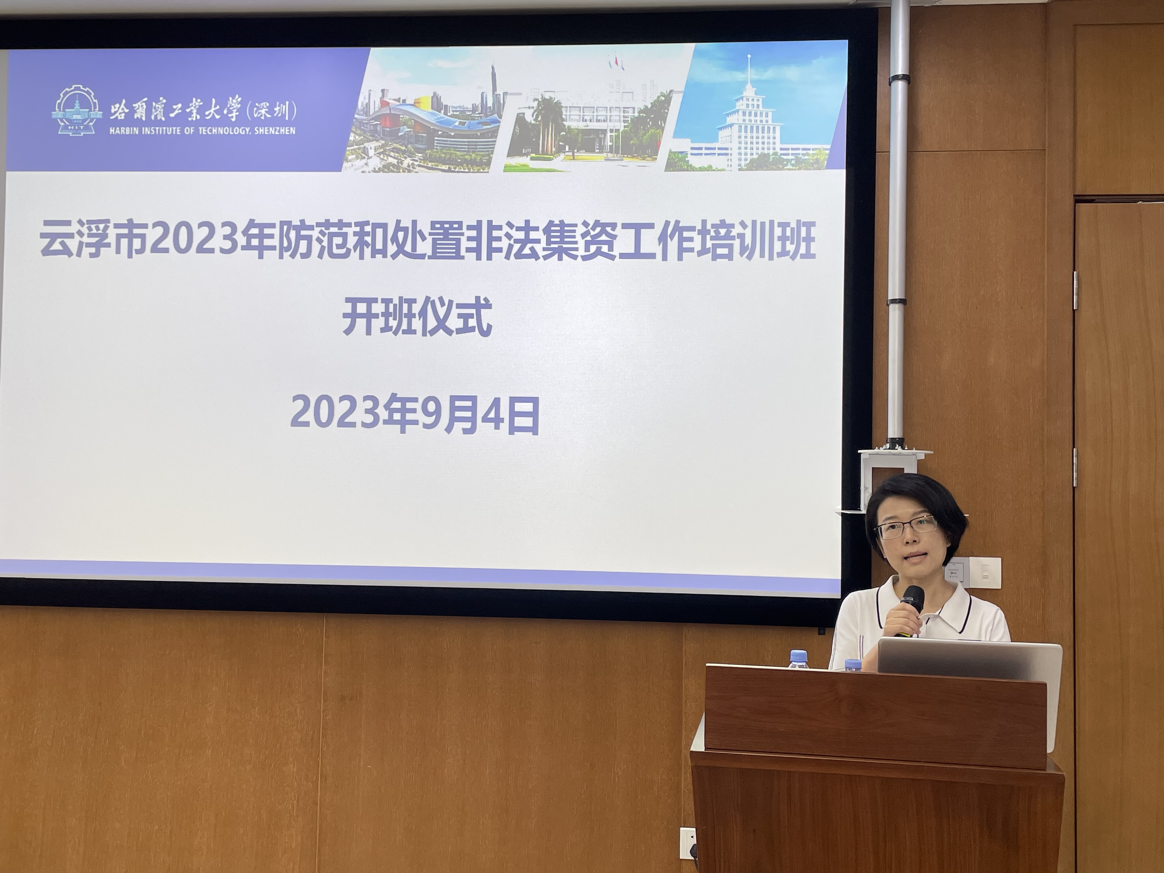 为深入贯彻党中央、国务院关于防范化解金融风险和强化金融监管的决策部署,认真落实习近平总书记视察广东重要讲话精神,推动云浮市金融业高质量发展,云浮市金融工作局联合各县(市、区)人民政府于9月3—6日在哈尔滨工业大学(深圳)举办云浮市2023年防范和处置非法集资工作培训班,云浮市金融工作局局长梁首艳、深圳市地方监管局监管三处处长刘谦、哈尔滨工业大学(深圳)继续教育学院院长曹勇出席开班仪式并作动员讲话,市处置非法集资领导小组成员单位和各县(市、区)共60名干部参加培训。