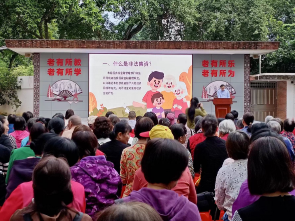 市处非办工作人员先后到云浮市老干部大学、云城区居家养老服务中心进行防范非法集资宣传讲解。在活动现场,工作人员通过悬挂宣传标语、发放宣传资料、现场互动问答、发放宣传礼品等形式,向老干部、老人家讲解养老领域非法集资“三性”基本概念和主要特征,重点讲解非法集资“画饼—造势—吸金—跑路”四部走套路,以身边人说身边事的形式解读辖内非法集资案例,揭露养老领域非法集资的“陷阱”,手把手传授反诈防骗知识,提醒投资养老服务要验证养老机构的合法性,应审慎购买,并提高防范非法集资和反诈防骗意识。当天活动覆盖市老干部大学约150名老干部、区养老服务中心20多位老年人。