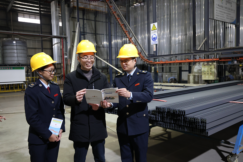 在新兴一家生产不锈钢产品的公司车间里,大批新出厂的产品整齐排列,正准备运往世界各地。税务干部结合公司经营现状,向企业财务人员和相关负责人现场宣讲“先进制造业加计抵减”“增值税留抵退税”“重点群体就业”等税收优惠政策,并送上《个性化政策指引》,引导企业安心生产销售、及时享受政策。