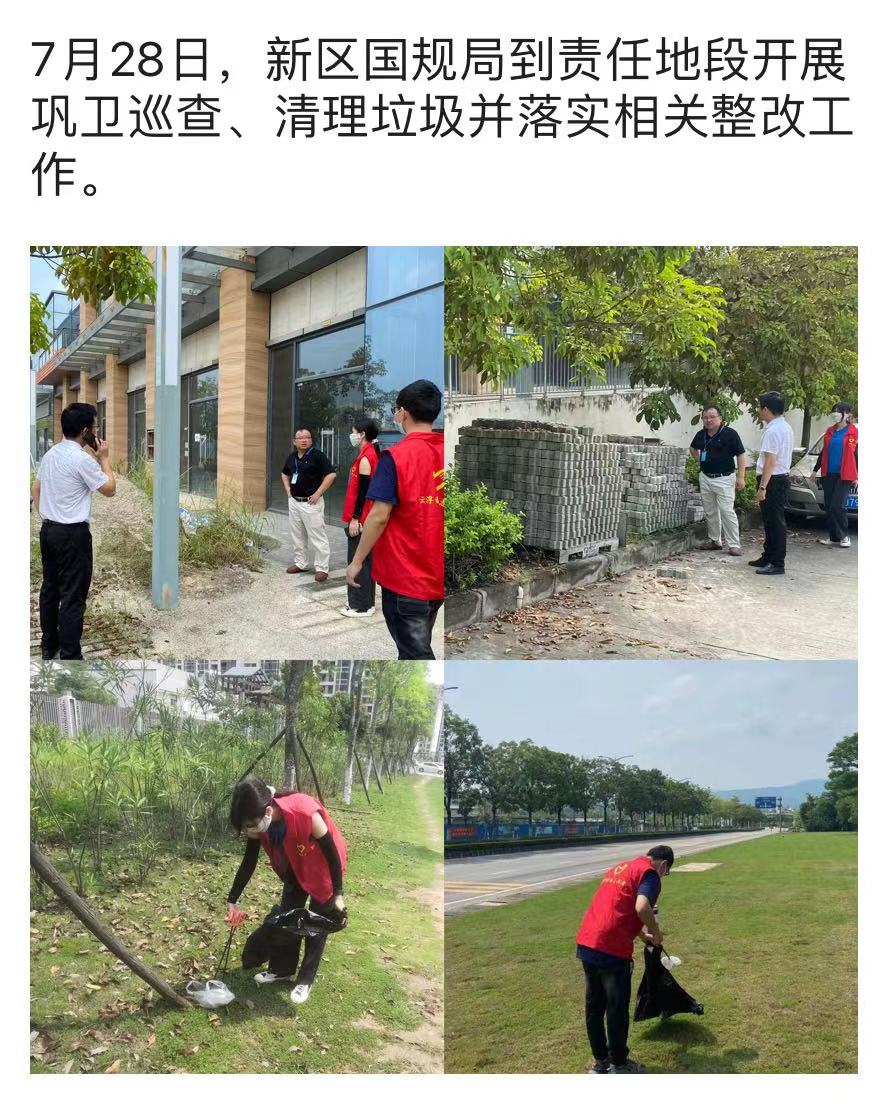 7月28日,云浮新区党政办组织人员到责任片区开展日常巡查,清理卫生黑点,指导商户做好门前保洁工作。