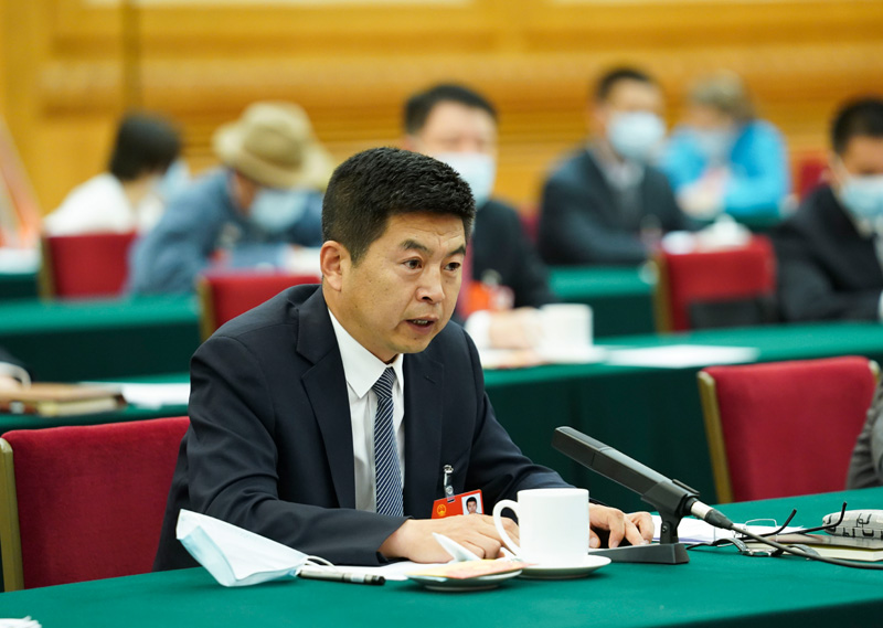 5月22日,全国人大代表费东斌参加内蒙古代表团的审议并发言。新华社记者 黄敬文 摄