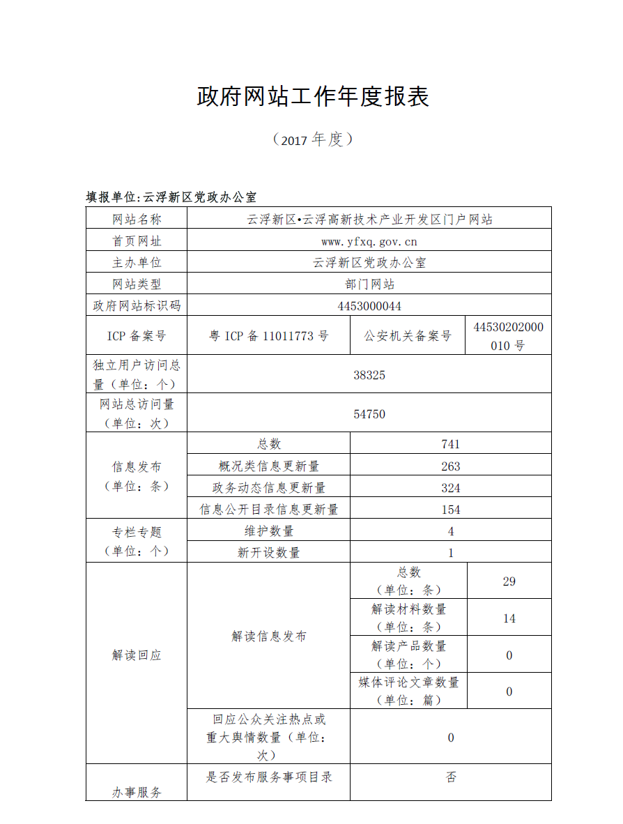 云浮新区政府网站年度工作报表