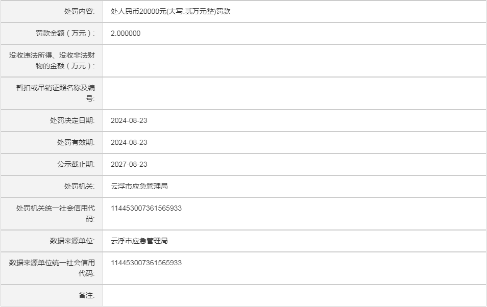 (云)应急罚〔2024〕33号中电建(云浮)绿色矿业有限公司行政处罚案
