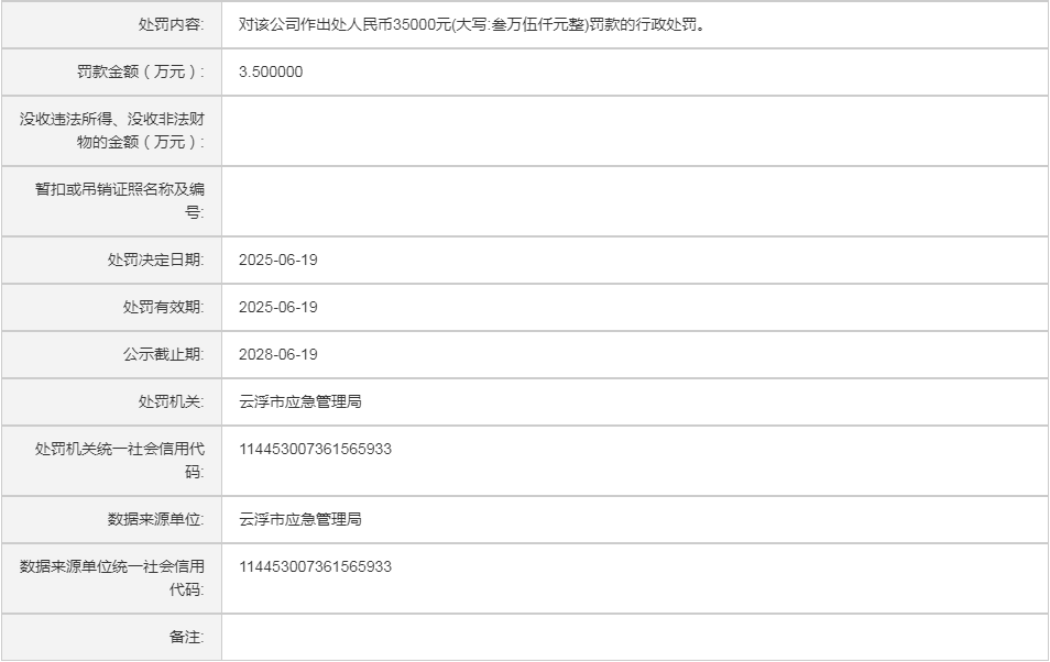 (云)应急罚〔2025〕2号广东奔业新能源有限公司行政处罚案