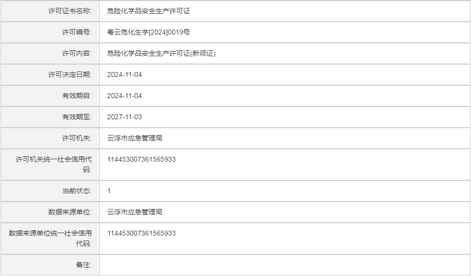 云应急(危化)许证决字〔2024〕177号广东云硫云盈科技有限公司危险化学品安全生产许可证(新领证)
