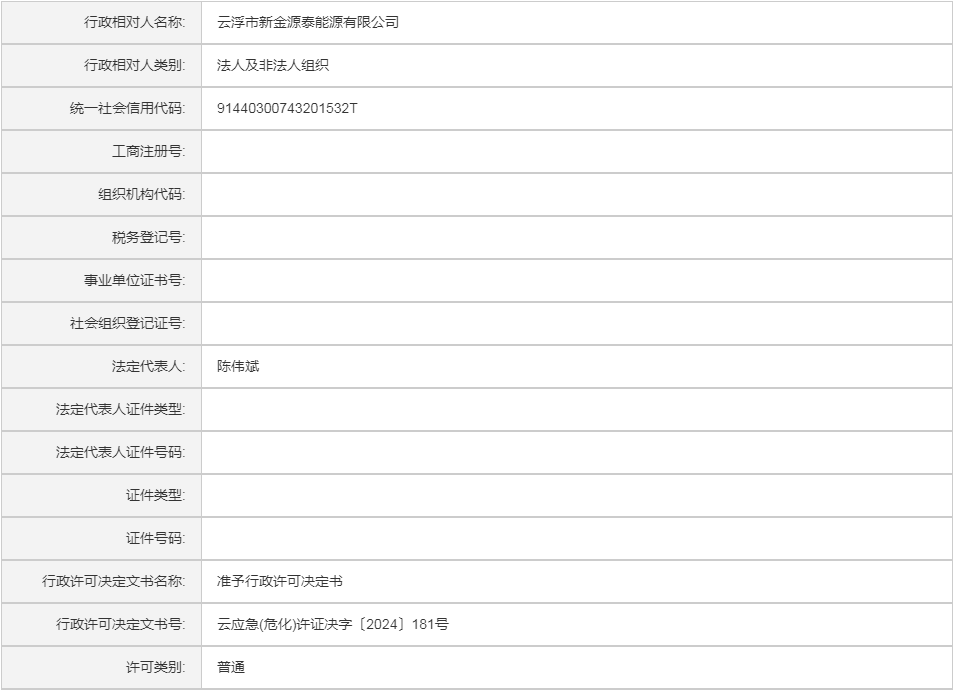 云应急(危化)许证决字〔2024〕181号云浮市新金源泰能源有限公司危险化学品经营许可证(延期换证)