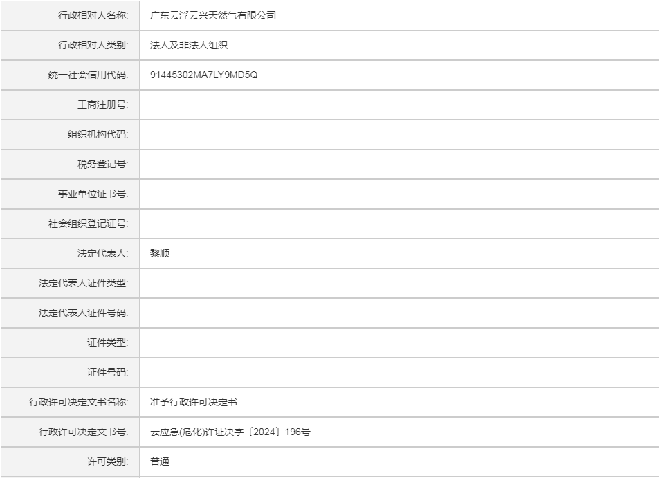 云应急(危化)许证决字〔2024〕196号广东云浮云兴天然气有限公司危险化学品建设项目安全设施设计审查意见书(云城段)