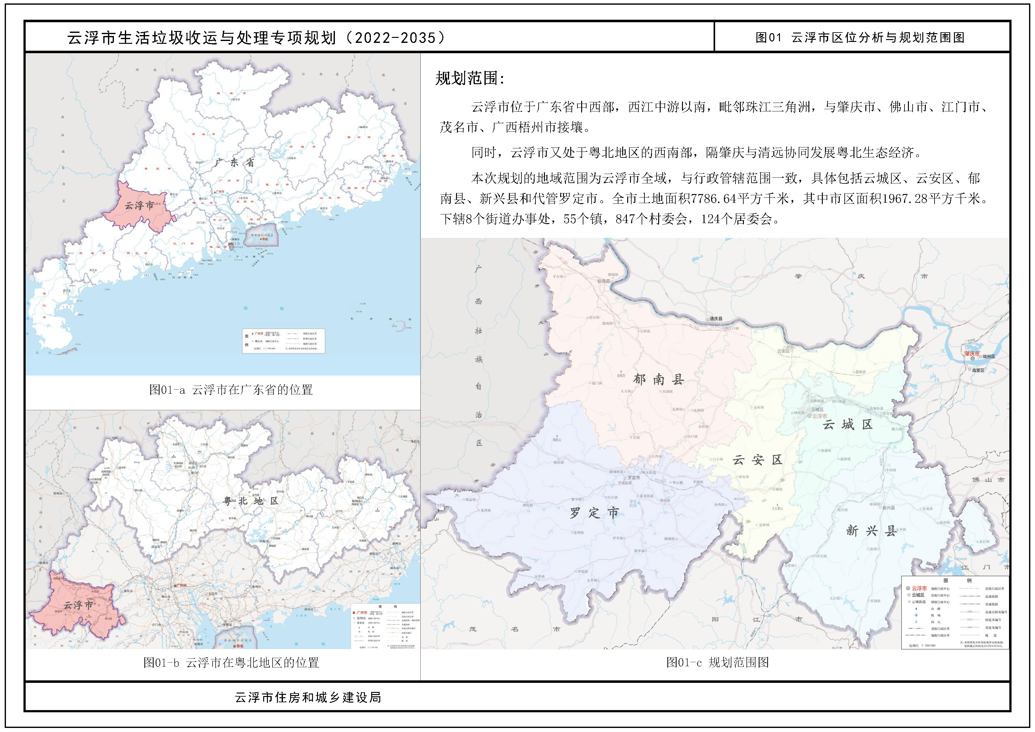 《云浮市生活垃圾收运与处理专项规划(2022-2035)》于2022年6月由云浮市住房和城乡建设局组织编制,现已征求相关职能部门意见、召开听证会及通过专家评审,编制单位对规划进行了修改和完善,现完成公告稿。为了听取社会公众意见,增加规划透明度和科学性,根据《中华人民共和国城乡规划法》、《广东省城乡规划条例》的有关规定予以批前公告,公告时间:2023年2月6日-2023年3月8日(共 31 日),具体公告内容公告如下: