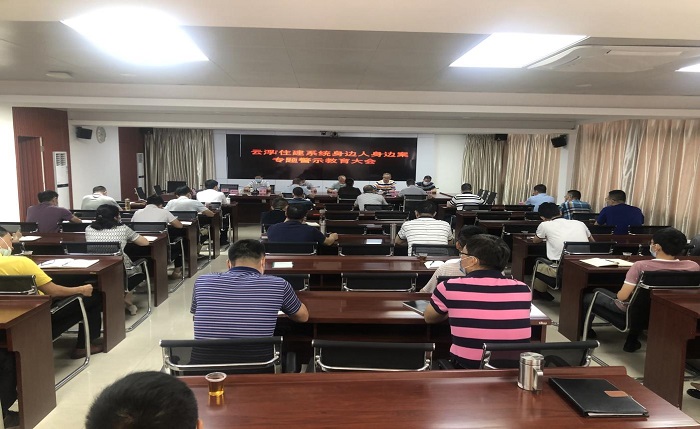 8月4日上午,云浮市住建系统身边人身边案专题警示教育大会在四楼会议室召开。市住建局主要负责人李益汉同志委托局党组成员、副局长吴宝钦同志作讲话。市住建局党组成员、副局长潘仲明同志主持会议。会议宣读案件政务处分决定书和纪律检查建议书,通报党的十九大以来(2017年11月至2021年3月)全市查处住建系统违纪违法案件剖析报告,重要岗位人员作表态发言。