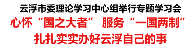 7月27日下午,云浮市委理论学习中心组举行学习会,专题学习贯彻习近平总书记在庆祝香港回归祖国25周年大会暨香港特别行政区第六届政府就职典礼上的重要讲话精神,以及与省委有关负责同志重要讲话精神,一体落实全省干部大会及有关文件部署要求,示范带动全市学习宣传贯彻工作不断走深走实,进一步增强忠诚拥护“两个确立”、坚定践行“两个维护”的政治自觉,牢记嘱托、感恩奋进、勇毅前行,切实以优异的成绩迎接党的二十大胜利召开。云浮市委书记卢荣春主持会议并讲话,市长李庆新出席会议。