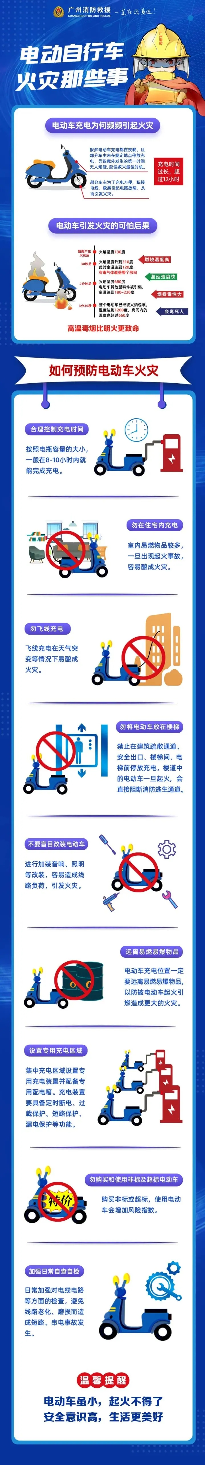 为进一步做好电动自行车停放充电管理工作,有效预防并遏制电动自行车亡人火灾事故,保障人民群众生命财产安全,特制定本工作指南。电动摩托车、电动轻便摩托车、电动三轮车参照此执行。