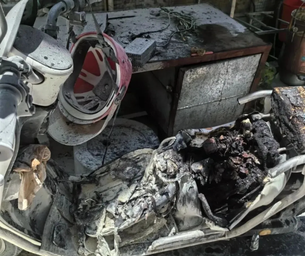 中山:电动车停放室外充电起火