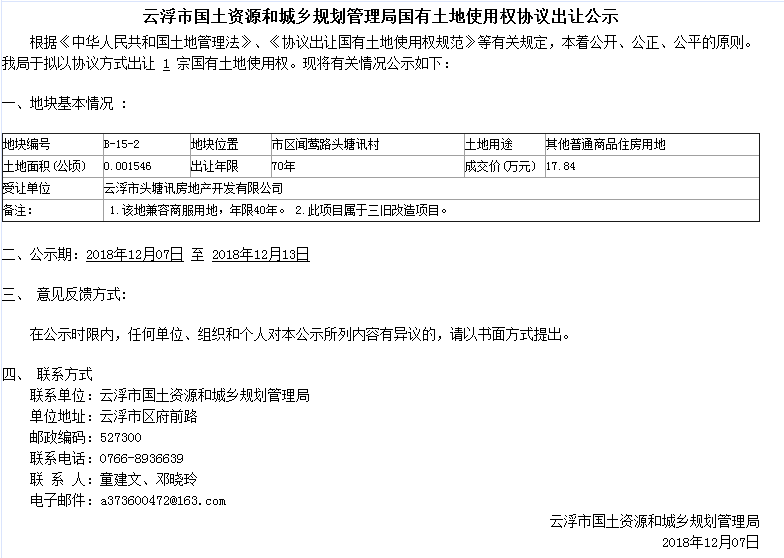 云浮市国土资源和城乡规划管理局国有土地使用权协议出让公示