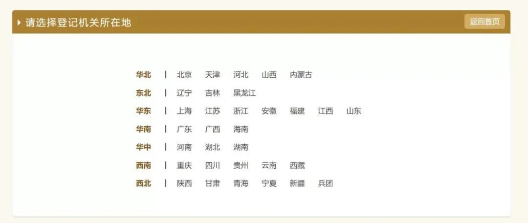 2、点击“企业信息填报”,在区域选择企业登记机关所在地。