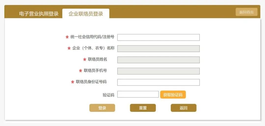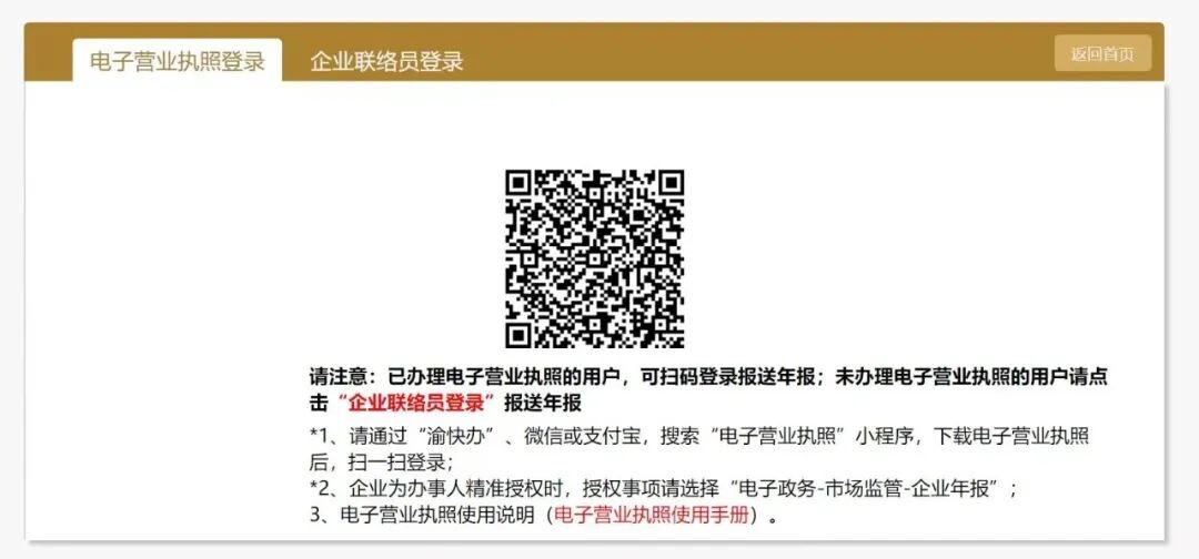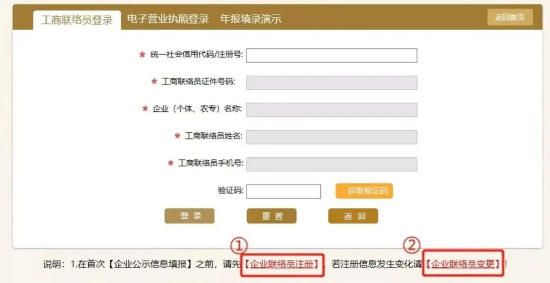 4、推荐使用电子营业执照登录进行信息填报,您也可以【注册企业联络员】,填录相关信息登录公示系统。如联络员发生变更,请点击【企业联络员变更】;如为首次填报,那则需要点击【注册企业联络员】。
