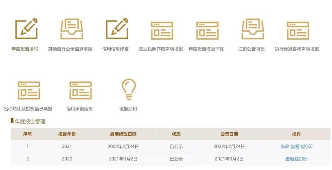 8、提交后修改。提交并公示后,如发现有部分内容填写错误的,在6月30日前可以登录年报系统页面进行修改。若发生修改,务必在修改后再次点击“提交并公示”,否则系统将显示为未完成年报状态!