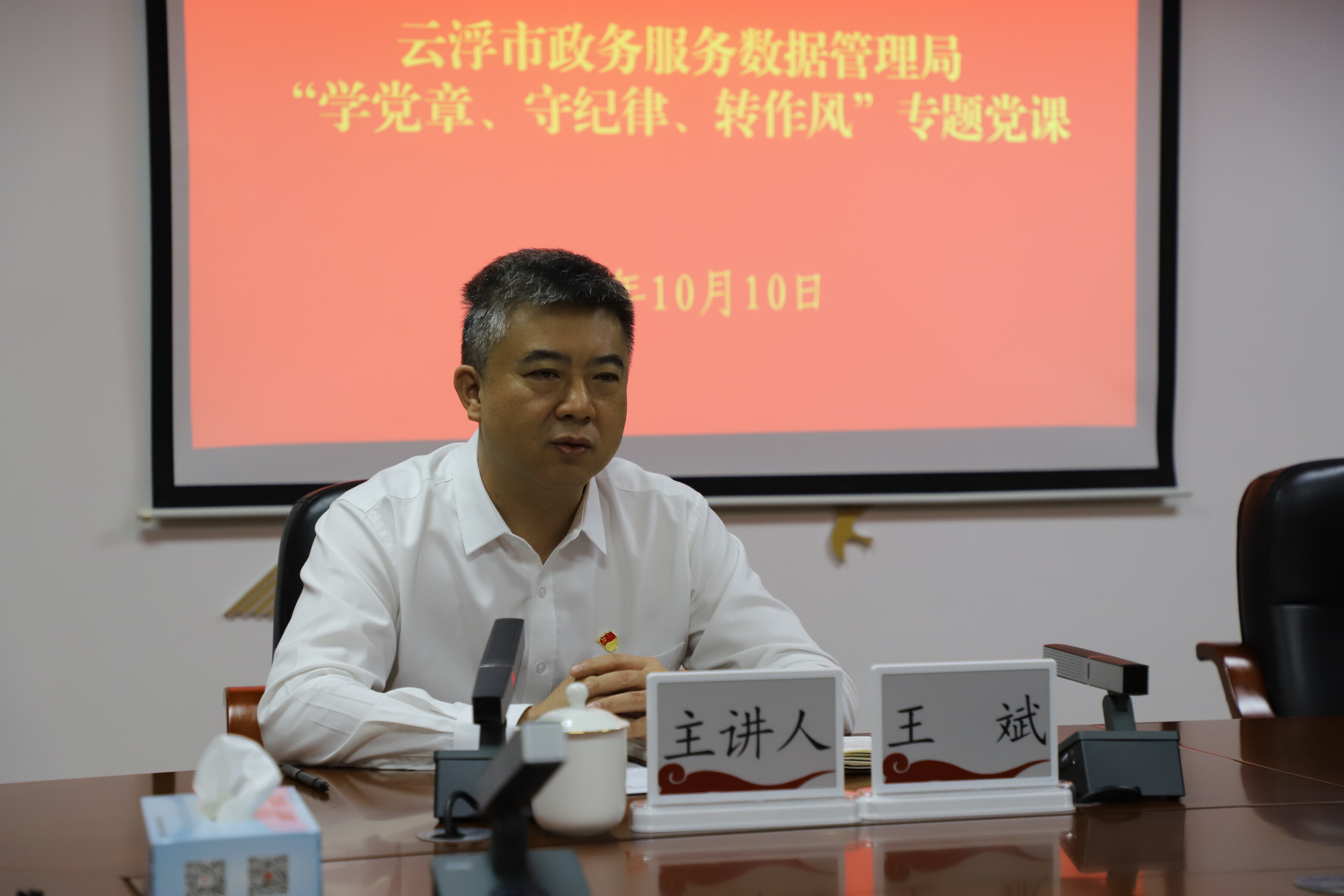局党组书记王斌以《学党章、守纪律、转作风》为主题上专题党课,教育全体党员干部切实增强政治纪律和政治规矩意识,始终坚定正确的政治方向,加强党性锻炼和道德修养,加强和改进作风建设,坚持用党性原则和纪律规矩来约束规范自己,筑牢拒腐防变的防线,为加快数字政府改革建设提供强大精神动力。